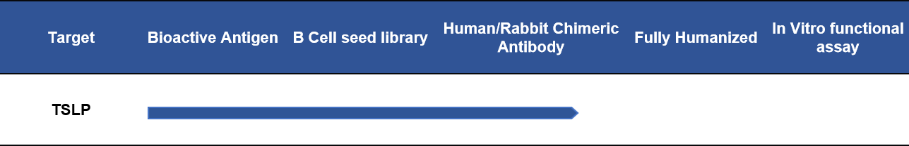 DIMA currently offers recombinant proteins of TSLP and its receptors (human/mouse origin), monoclonal antibodies and reference antibodies (including biotin/PE-labeled antibodies). We also provide comprehensive services, including protein/antibody customization, antibody humanization, antibody affinity maturation, and stable cell line development. In addition, we have established a B cell seed library for the TSLP target, which enables rapid screening of lead antibody molecules within 20 days according to customer requirements.For more details, please call email us at info@dimabio.com / orders@dimabio.com.