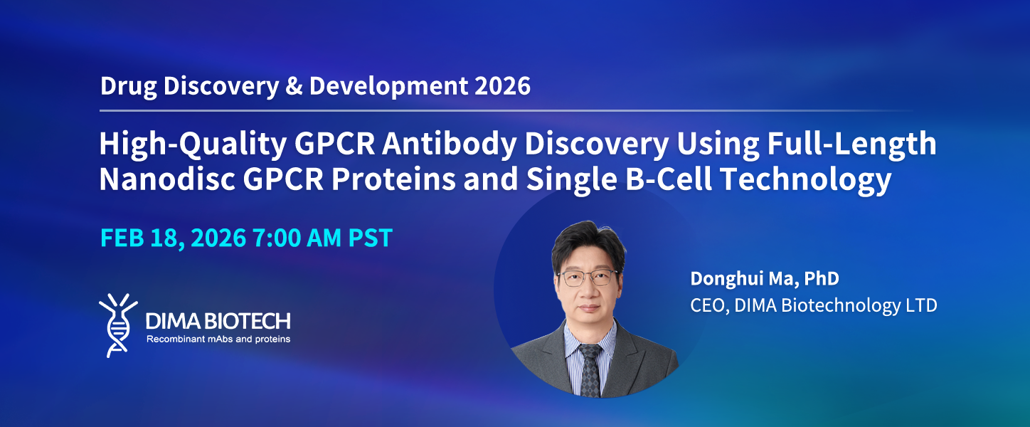 GPCRs represent one of the most important yet technically challenging classes of drug targets, largely due to difficulties in producing stable, native like antigens and generating high-quality antibodies. In this presentation, Dr. Donghui Ma will share DIMA Biotechnology’s integrated strategy for GPCR antibody discovery, combining proprietary full-length Nanodisc GPCR protein platforms with single B-cell cloning technology.