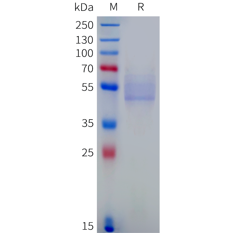 Figure 1. Cynomolgus CEACAM8 Protein, His Tag on SDS-PAGE under reducing condition.