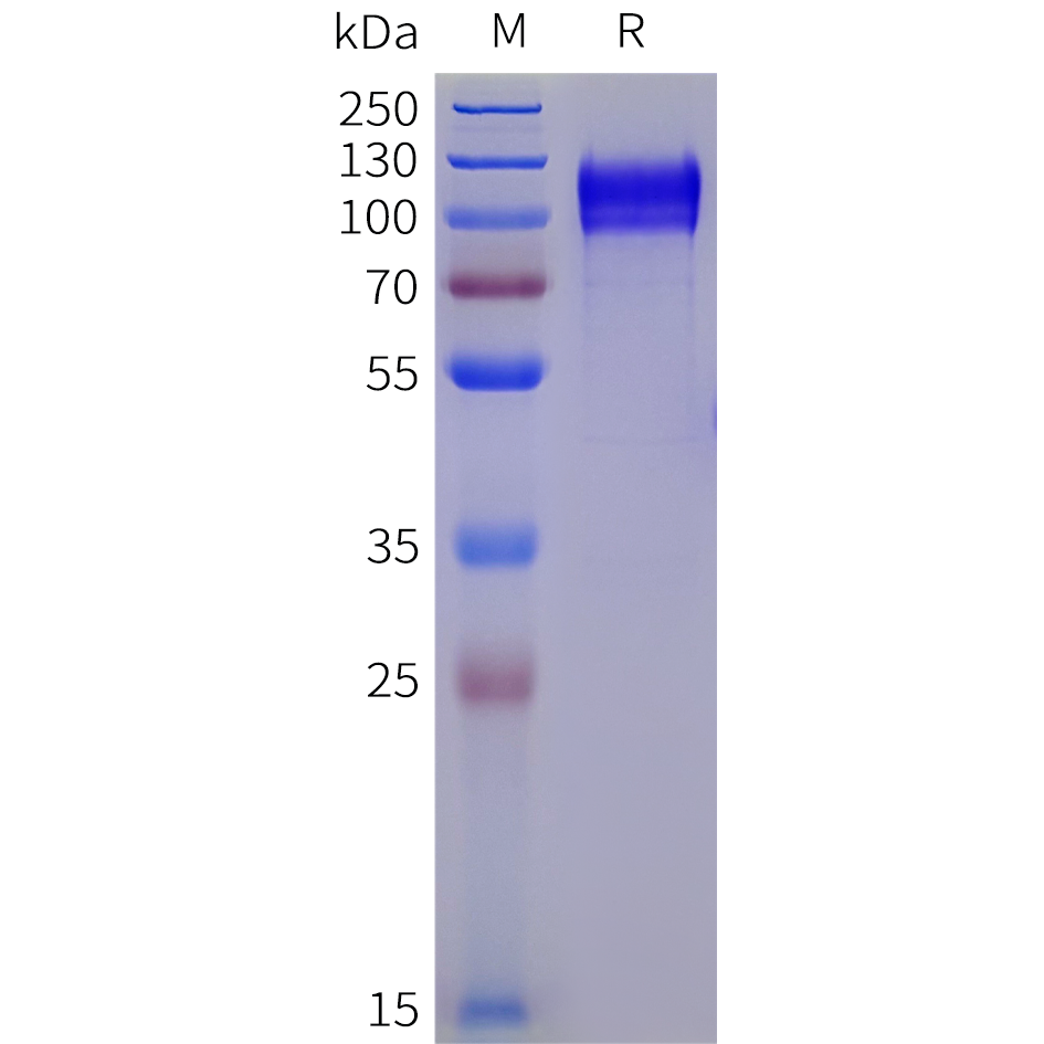 Figure 1. Cynomolgus SIRPα Protein, hFc Tag on SDS-PAGE under reducing condition.